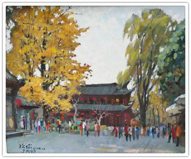 《百年银杏秋意浓》 布面油画(80X60)cm