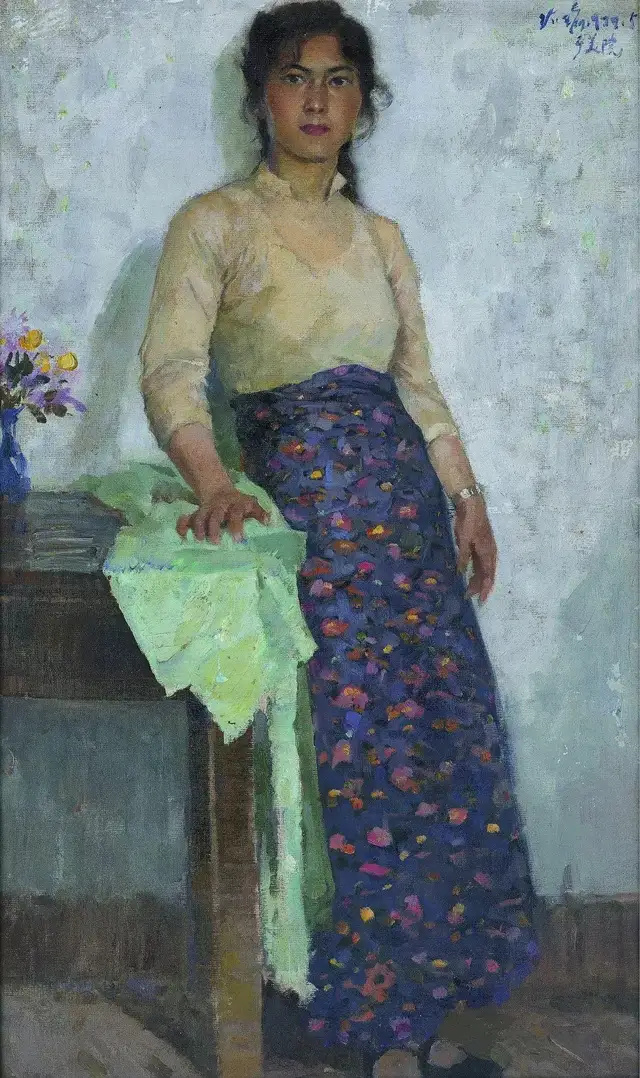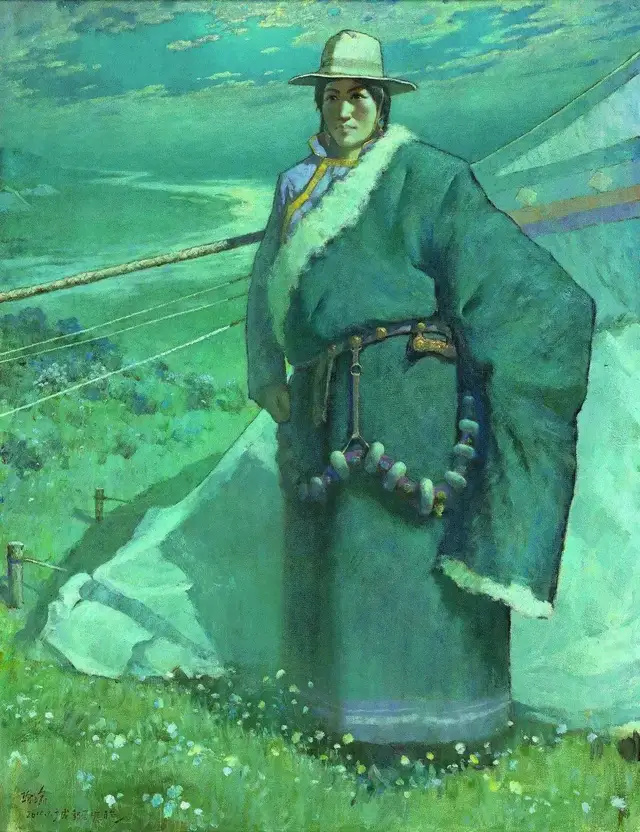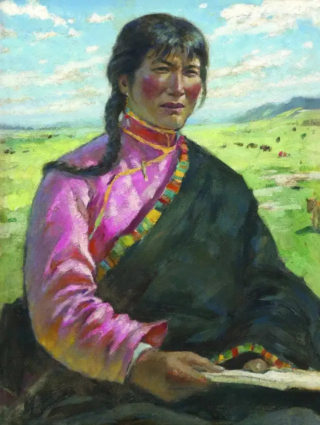 《汶川地震后新的家园——羌族姑娘》布面油画(80X80)cm
