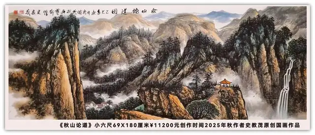 史教茂艺术简介: 史教茂,字越田,号太白山人,复兴堂主,陕西省兴平市人,1964年生。中国当代实力派著名画家,国家一级美术师。现任中国书画家协会理事,中华人民共和国文化和旅游部艺术交流名誉顾问,中央美术学院客座教授,全国名人书画艺术界联合会委员,中国传统文化诗书画协会理事,中国文化名人诗词书画研究院理事,香港书画研究院特聘研究员,香港文联美术家协会会员,中华文化研究院院士,享有“中华文化名人”称号”,陕西省美术家协会会员,陕西传统文化交流协会副会长,陕西省文化艺术产业化促进会会员,陕西省山水画研究会会员,北京复圣轩文化传媒公司签约书画家,兴平市城北书画艺术馆馆长。 史教茂艺术成就: 史教茂的作品曾多次被邀请参加国内外书画名人名家大展,海峡两岸书画名家书画大展,及省市区书画大展。全国网络书画大赛,中国第十一届艺术节书画大赛,多次参与由中华人民共和国日史编辑委员会诗书画院组织承办的国际国内书画大展。先后荣获金奖,一等奖十一枚,银奖突出贡献奖,五枚。荣获“中国当代书画名家”、“共和国书画艺术名家”、“中国当代书画艺术名家杰出成就奖”、“优秀人民艺术家”、“新时代优秀艺术家”、及航天英雄签名的纪念勋章各一枚。作品在人民大会堂、俄罗斯、中亚各国、日本、韩国、新加坡、澳门、香港等地巡回展出多次。为十八大、十九大、二十大的召开及国家重大会议活动的两会委员和航天工作人员,航天英雄,捐赠作品数幅。先后授权中国邮政、中集邮、国际集邮、美国、英国、法国、荷兰、加拿大、澳大利亚、等国在各国邮票上使用本人原创的作品图片印发邮票。参与出版国家重点书画集《新中国美术图鉴》,《中国美术传世经典》,《大国艺术传世名家》,《世界书画收藏档案》,《大红袍五大家》,《聚焦中国当代艺术家》,《中华艺术史》,《世界艺术巨匠大辞典》,《国礼典藏》,《国之魂宝艺术大典》,“庆祝故宫博物院建院一百周年”,《文化核心/综合书画集》,《中国书画名家精品大典》两期,《一带一路辉煌中国》,《中国红2019全国名家书画展》作品集,《中国脊梁陕西中国画作品集》,《陕西文化旅游名镇美术作品集》,《陕西省职工文化艺术节书法美术摄影作品集》,《陕西首届旅游书画摄影大赛作品集》,《中国文化进万家2018年精品台历》,《大城之心书画大赛作品集》,《庆祝中国共产党成立一百周年书画作品集》两期,《水墨传承九三学社全国书画名家邀请展作品集》两期,《海峡两岸名家书画作品邀请展作品集》四期,先后两次被兴平市市委宣传部,兴平市文联受授予“德艺双馨”文艺工作者,2017年被中国文化进万家工作委员会认定为“最具收藏价值书画名家”,作品升值潜力巨大。 2022年自筹资金一百余万元,成立兴平市城北书画艺术馆,该馆目前是西北地区个人投资规模最大的书画艺术馆。占地面积六百多平方米, 布展面积一千多平方米,展出作品八百余幅。为广大的书画艺术爱好和收藏者提供了一个交易、交流、学习的平台,推动了地方文化艺术事业的健康发展,活跃了人民群众的文化生活,为传承中华文化艺术做出了巨大贡献。 2025年获“达芬奇国际艺术金奖”;“中国艺术风云人物——新时代艺术标杆•二零二五年中国艺术最高功勋成就奖”;在故宫博物院建院一百周年之际,荣获“2025年新锐文化核心人物”殊荣。中央美术学院院长、著名画家、教育家,靳尚谊先生撰写获奖词。这是对他在传承和创新中国国画艺术中取得的成绩的肯定和认可。2025年中国书画艺术指导委员会颁发“最具收藏价值艺术奖”;2025第八届全国艺术典范“人民的瑰宝”艺术奖;cctv华夏之声(国家记忆)艺坛数风流人物卓越贡献奖章;在2025年伦敦艺术双年展全球推荐艺术家活动中荣获推荐艺术家一等奖;2025年春节前夕,北京地铁9条线路同时展播了史教茂先生的巨幅山水作品,为北京市民和国内外友人一饱眼福,弘扬了中华文化艺术的博大精深,受到了良好的反响。 艺术风格与传承: 史教茂先生笔下的作品雄伟壮丽,气势万千,自成一格,为世人所赞誉。欣赏他笔下的飞瀑图,你可以感受到一种磅礴之气从画面中悠然而起,若风旋水泻、毫飞墨喷;似闪电雷鸣、惊涛扑岸;又如狂飙戾天、浓云惨淡...,这正是傅抱石的画风,于磅礴大气中见精微,于蓬勃生机中显率真。 史教茂先生画山水,尤善于发挥用笔效能,以笔尖、笔肚、笔根等的不同运用来表现自然山川的不同变化。云水为陆俨少绝诣,有雄秀跌宕之概。勾云勾水,烟波浩淼,云蒸雾霭,变化无穷。 史教茂先生一生致力于山水画,作品长于飞瀑流泉、风帆、霜林;笔墨氤氲,水意蒸融,苍劲有力,气势雄壮。他以全景作构图,从上到下,山峦层叠,林木扶疏,尽收眼底,表现出了深远的空间感和气韵感。 拜观史教茂先生的作品,给人一种酣畅淋漓之感。意空灵,图壮阔,听松涛阵阵,观雾霭茫茫,感受云卷云舒。亦有“鸢飞戾天者,望峰息心,经纶世务者,窥谷忘反”之超脱,又如山中高士,俯仰间,阅尽世间万物轮回,给人酣畅淋漓之感。 史教茂先生的山水画作,一草一木、一山一石皆若风骨外化、灵性活现,又似云蒸霞蔚,气象升腾。蓦然感受到:生命在律动,自然在游走,真与善、灵与魂,在参差渗透,竞相净化,身心如沐春风,心田如饮甘霖 史教茂先