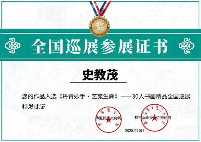 【丹青妙手·艺苑生辉】史教茂——书画精品全国巡展2025-10-16 15:52来源:新华网浏览数:9735次