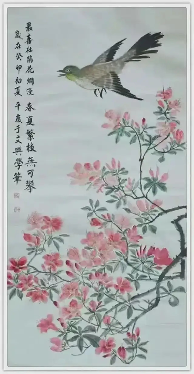 2020年后,于文兴的艺术身份发生了质的飞跃。入驻国家名人数据库、全国书画人才资料数据库,参加庆祝建党100周年书画展,被授予"人民艺术家"荣誉称号,作品入编《中国美术史》,这些成就标志着其艺术地位得到国家层面的认可。而2023年成为"国务外交礼品师"、"国家对外友好文化使者",2024年担任国宝级央新名人档案组委会高级顾问、获中俄友谊艺术展金奖,则意味着其艺术功能已超越审美范畴,成为国家文化外交的重要组成部分。这种从艺术创作到文化使者的身份扩展,构成了于文兴艺术人生的第三次重要转型。 于文兴的艺术风格,可从三个维度进行解读。在技法层面,他实现了碑帖融合——既有帖学的流畅韵律,又不乏碑学的雄强骨力;在形式层面,他探索了书画同源,主攻山水、花鸟的绘画实践与其书法创作形成互文关系;在精神层面,他追求"中和之美",作品既保持传统的法度严谨,又流露出现代的个性表达。这种风格特征在其近年外交礼品创作中表现得尤为突出——既要体现中国文化的深厚底蕴,又要符合国际审美共识,于文兴的作品恰好在传统与现代、民族与国际之间找到了平衡点。