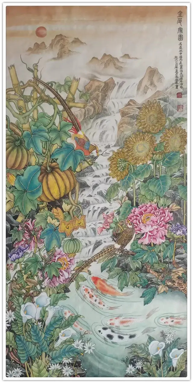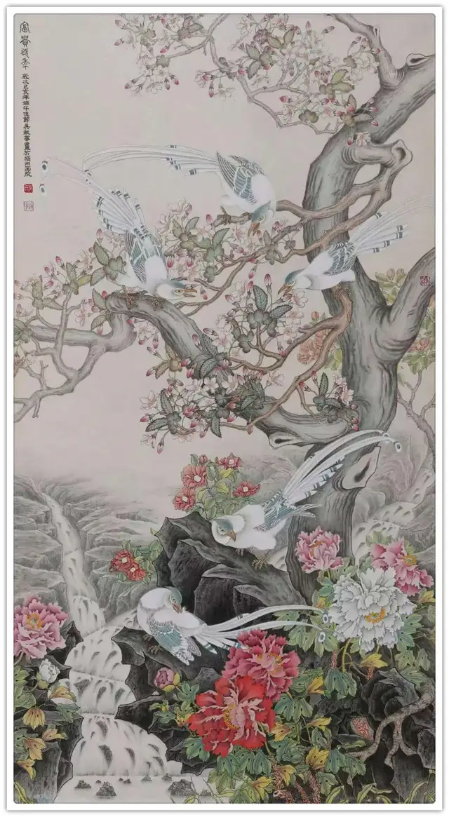 《四季皆春 百鸟贺岁》240X120㎝ 2015年