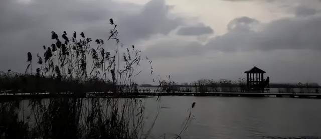 迎着轻风细雨,那大片大片茂盛的芦苇丛,伸展舞动着纤长美丽动容的“千手芦花”,在秋雨律动的节奏中,摇曳着细长婀娜的身姿,向我们点头微笑。这时,随着雨声渐大,我和爱人打起了伞牵着手双双踏上窄窄长长有些打滑的木栈桥,小心翼翼朝着芦苇荡深幽的“望江亭"走去并坐在亭中。