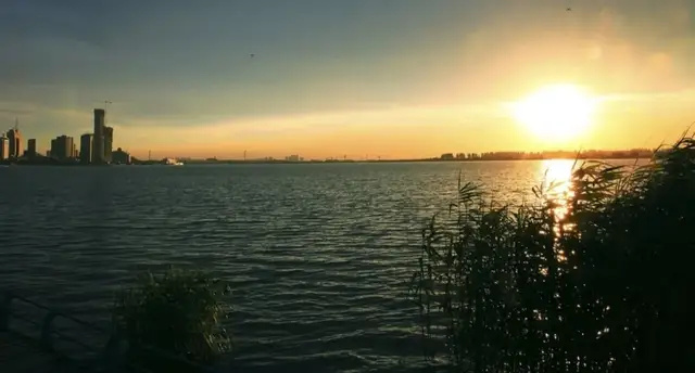 走到必经北固湾的宝鼎广场,我们和不少人一样先后去轻轻地“敲打”了几下高大的铜铸“宝鼎”,喜欢听那种低沉悠扬轰鸣悦耳的钟乐声,为生活和奋斗在这块江南水乡低调的人们而祈福! 后来我们俩另辟蹊径,向北固湾江边走去,见岸边数不清的圆润长出青苔的卵石,它被江潮洗礼得已具有生命与灵性;它见证了历史的沧海桑田;它也悲壮地见证了英勇不屈的镇江人民,抗击英法联军的侵略而不怕牺牲前赴后继!如今它又见证着勇毅前行的当代镇江人,建设美好的文化家园和北固新湾。后来我俩来到了美丽的北固湾天然湿地。