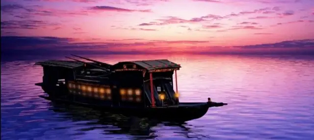 亭外淅淅沥沥的连绵秋雨拍打着芦苇沙沙声响,远望茫茫北固湾辽阔的江面许多点点光亮,哦那是叶叶晚舟灯火闪烁的幸福人家……我们由然联想到以前去外地观光,也是傍晚看到嘉兴湖畔那像征革命摇篮的“红船”之“灯火”……