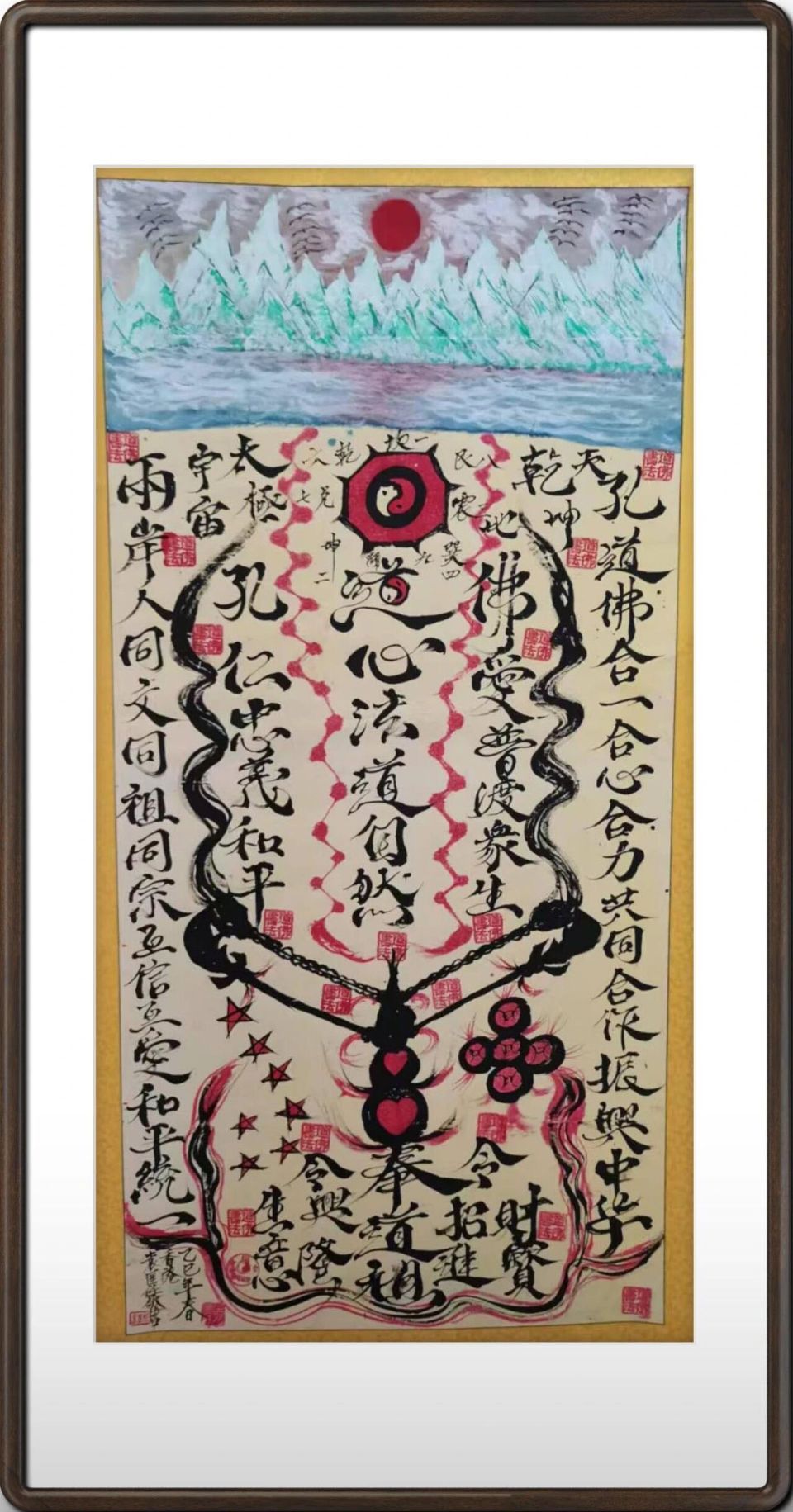 袁匡任三博士,孔道佛图腾风水能量书画 六尺整张