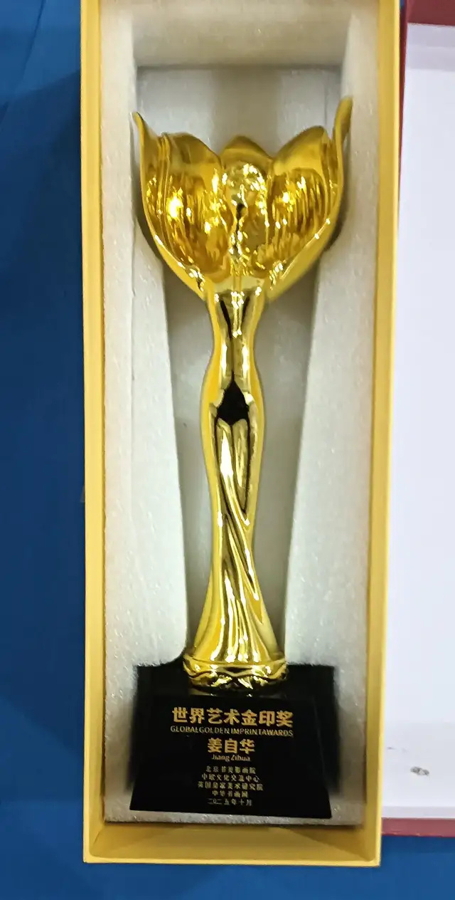 姜自华1966年2月16日生,湖北黄石人。13岁节衣缩食购书,开始写作立志,1986年发表作品,1993年秋天下岗。曾骑自行车穿行于大街小巷,磁湖碧波荡漾,山峰夕照相映成趣,美如仙女,心中美情万丈,沉浸于诗歌状态中,不料被飞奔而来的吉普车,撞到于路边。时光如水滚滚东去,苦苦寻觅诗歌清风论香的意境,千思万虑不能立新吐血不止,心灵的万家灯火忧思到黎明。一轮红日当空,浮现出英雄的指南针,中国抗日官兵拖着流血的身躯,身绑手榴弹,瞪大双眼爬到敌军坦克履带下。与敌同归于尽的惨烈悲壮,深深震撼了心灵的长城,随即抹去血迹,继续战斗。十五种职业,十五种经历,十五种思维。生死之交的边界上,小心翼翼走过心惊胆战的钢丝绳,猛然抓住了生活的辩证法,从数学公式中发现了文学的机密。生活的陡坡,曲曲折折起起伏伏。仰望梦想的夜空。捕捉满天繁星的诗情画意。已出版个人专辑11本。国家世界级珍藏册150余部,获国家世界级奖杯奖章,奖牌证书200余件。曾含泪放弃与李白汇编成集,诗歌已与萨士比亚,普希金,苏东坡,泰戈尔,旦丁等中外大家荣登大雅之堂。摘取了中国开派巨匠勋章。捧回了联合国教科文等组织颁发的:联合国文化与和平使者勋章、国际艺术节金鹰奖、世界艺术终身成就奖、福布斯国际艺术最高荣誉奖。背靠共和国的高山,举起世界艺术金印奖、米开朗基罗艺术先锋奖等十九座国际奖杯,百感交集泪如雨下。世间先有伯乐,随后方有千里马;若无伯乐,千里马哀鸣不止,演变成了百里马,十里马。甚至沦为了躺平之马。