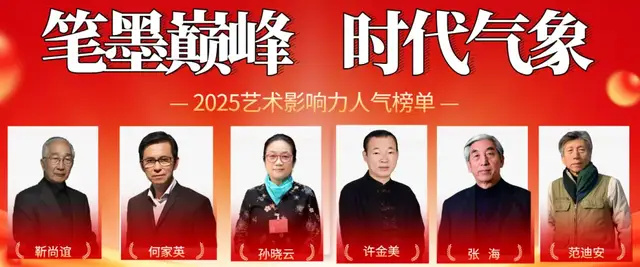 《笔墨巅峰·时代气象》2025艺术影响力人气榜单,旨在记录这个伟大时代的艺术脉搏。我们聚焦于那些以笔墨为舟、以时代为航的创作者,他们的作品既承载着千年文脉的深厚基因,又跃动着当代中国的澎湃心声。 这份榜单不仅是对艺术成就的肯定,更是对文化影响力的礼赞。入选者以其独特的艺术语言,在传统与现代的碰撞中开辟新境,在个体表达与时代精神的交融中确立坐标。他们用画笔书写历史,用色彩描绘未来,共同构筑了这个时代最鲜活、最动人的艺术景观。 让我们通过这些作品,感受艺术的温度,见证时代的高度。