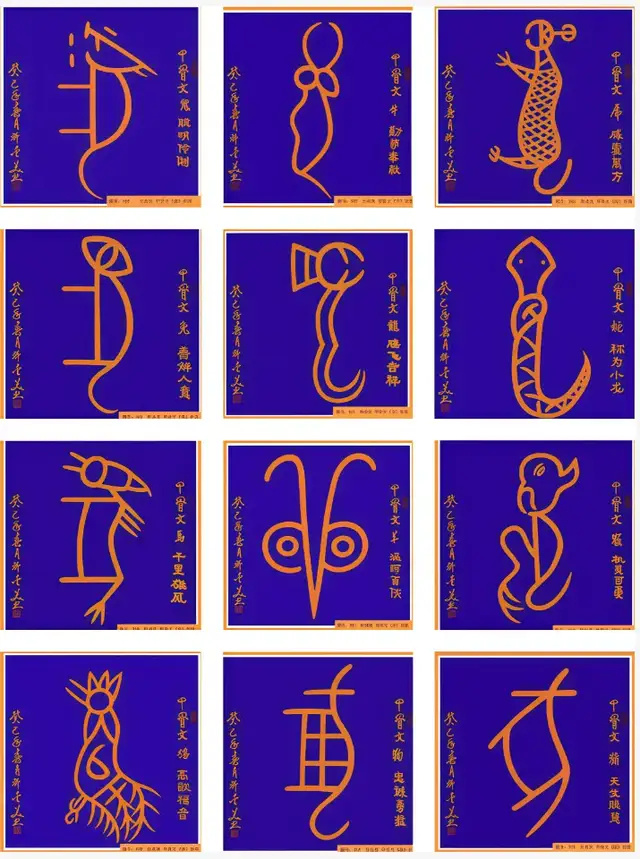 金字甲骨文十二生肖69X68mX12(孤品)。国家有关部门雕制在圆形的白色玉石上作为国礼由国家领导人赠送给外国元首。2024年11月,北京鸟巢组委会己定镌刻在水立方上,让国内外游人观赏。2024年荣获首届国粹文化金马奖。