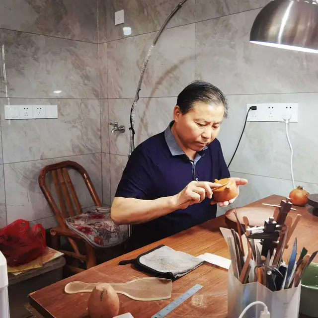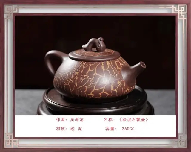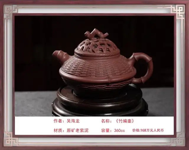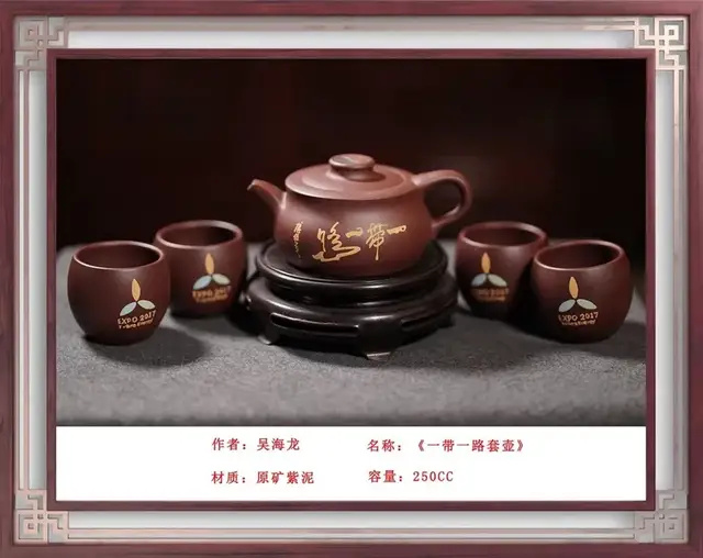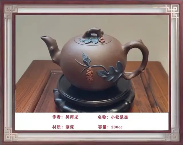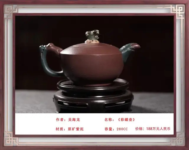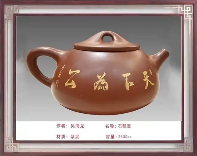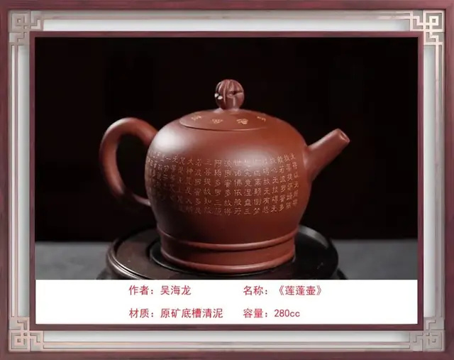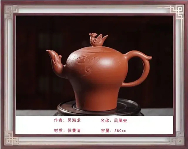 紫砂艺术薪火相传 Purple sand art passed down from generation to generation 吴海龙:中国工艺美术大师、中国国礼特供艺术家、中国著名陶艺名家、中国文化遗产保护传承人物、全国首批非遗大国工匠 吴海龙,江苏宜兴人,品牌“吴氏金鼎”的创始人。吴氏陶艺紫砂艺术馆馆长,手工艺术专业委员会会员。中国书法文化研究所创作中心客座教授、中国领导干部龙文化书画院紫砂艺术馆馆长。作品被人民大会堂管理局 、中国美术馆、中国农业博物馆收藏 ,英国爱普所宫等收藏。 1972年,随父研究创作紫砂陶艺(吴氏陶艺第五代传人);1992年,获轻工部中国工艺美术协会颁发的"陶瓷美术设计"奖;2001年,加入中国工艺美术学会;2013年,荣获教育部中国人生科学学会全国审美教育与文化产业合作组织授予的中国紫砂壶设计大师称号;