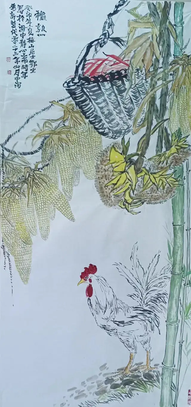 龚鄂生的艺术视野并未囿于花鸟一隅,他在人物与山水领域的探索同样值得关注。他的人物画,以简驭繁,重在神采的捕捉,往往寥寥数笔,便使人物情态跃然纸上。其山水作品,则得李宝林之雄浑,承程大利之苍润,在丘壑布置与气象营造上,展现出对传统山水精神的当代诠释。这种多领域的艺术实践,正是他“博采众长,融会贯通”理念的生动体现。 细究龚鄂生的艺术历程,早年负笈四方,遍访名师,后经中国美术学院花鸟专业的系统训练,再入华夏好丹青精英班深造,得李宝林、程大利、霍春阳、老圃、任惠中、刘贞麟、谭咨等诸师亲授。这一独特的学艺路径,使他的艺术既葆有学院派的严谨法度,又兼具文人画的写意精神,更融汇了当代审美意识,最终形成了他不落窠臼的个性风格。